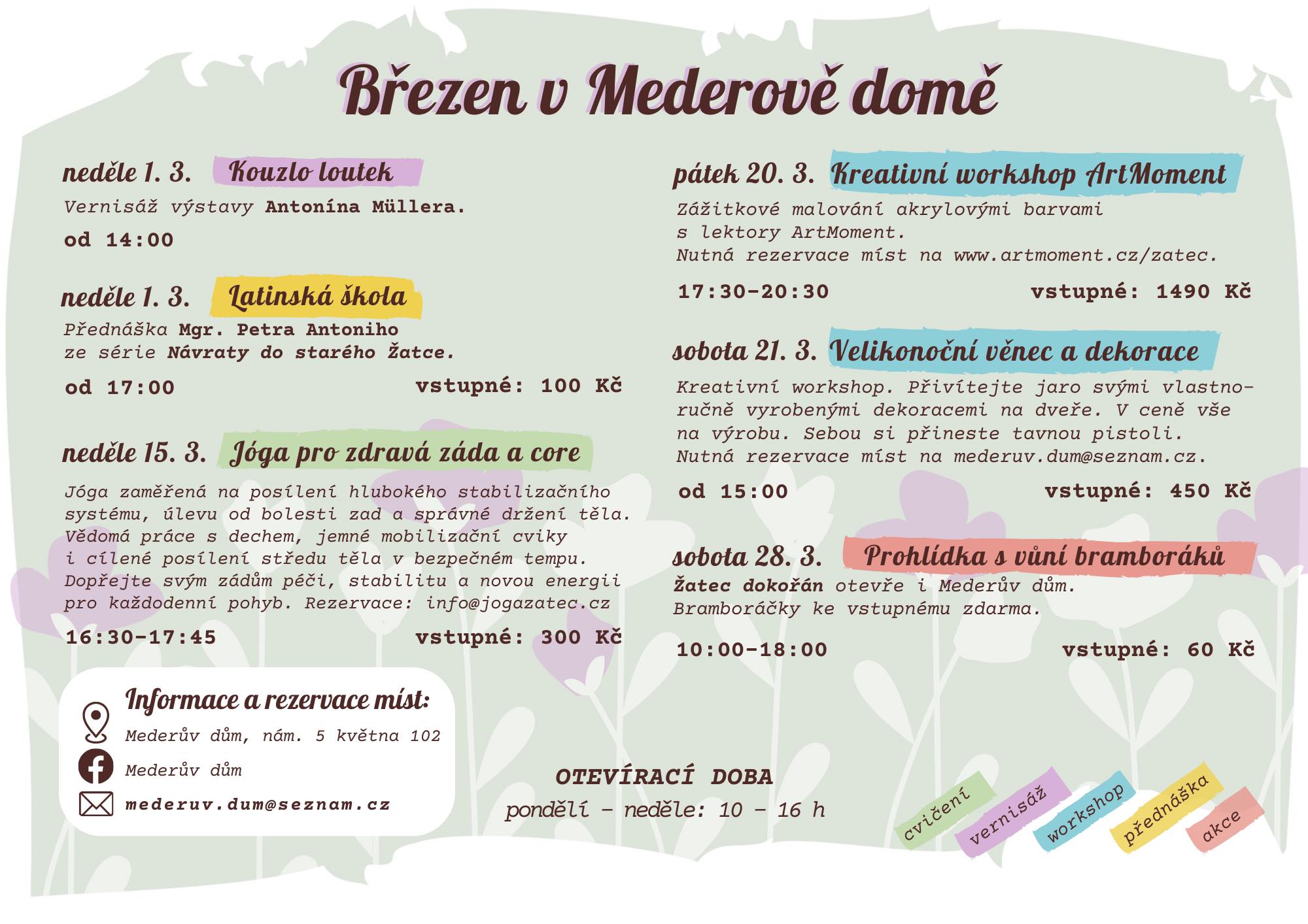 Komentovanou procházku k výstavě Kapucínské poklady pořádá v sobotu 14. března Regionální muzeum v Žatci. Sraz účastníků je ve 14 hodin u Křížovy vily, postupně se bude procházet a komentovat výstava ve vile, obraz Poslední večeře Páně ve Staré papírně a Kapucínský klášter. Nutná je předchozí rezervace přes systém Turistického informačního centra Žatec!